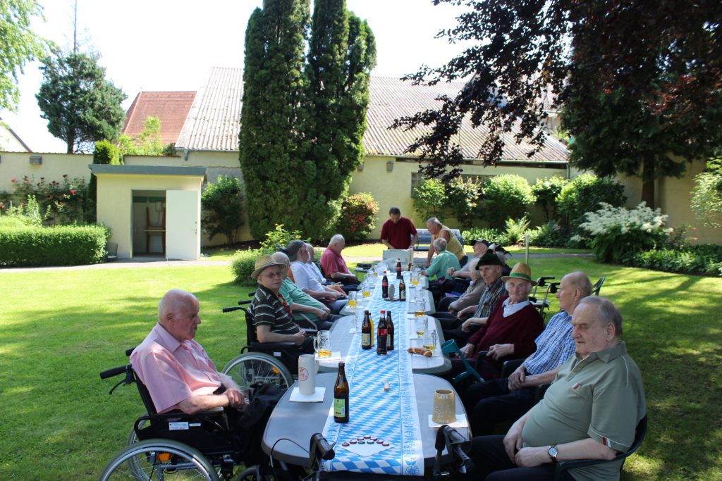 Der monatliche Männer Stammtisch fand im Juni erstmals im Freien statt. Nach Bier und Brez`n startete Betreuungskraft Gunther mit seinem Projekt „Insekten Hotel“. Form und Größe wurden im Vorfeld mit den Männern abgestimmt. Fleißig halfen viele mit beim Halten, Abschmirgeln der Sägekanten oder Zusammensetzen der Teile so dass schließlich zum Ende des Treffens der „Rohbau“ des Hotels zu bestaunen war. Beim nächsten Mal geht es an die Gestaltung der Inneneinrichtung der Insektenbehausung.