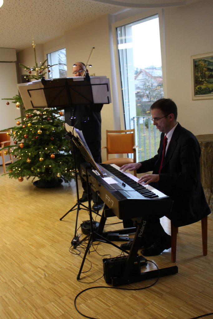 Mit verschiedenen Themen traten bei uns bereits die ungarischen Künstler auf. Am dritten Advent Wochenende boten sie ein Weihnachtskonzert vom Feinsten. Csaba Csaby am Klavier und Zolta`n Nemes auf der Violine begeisterten ihre Zuhörer wieder mit Werken u. a. von Händel, Mozart und Löhr. Darunter „Einzug der Könige“, „Schlittenfahrt“, „Die Hirten an der Krippe“. Das Konzert endete mit „Stille Nacht, Heilige Nacht“ in das die BewohnerInnen mit einstimmen konnten.