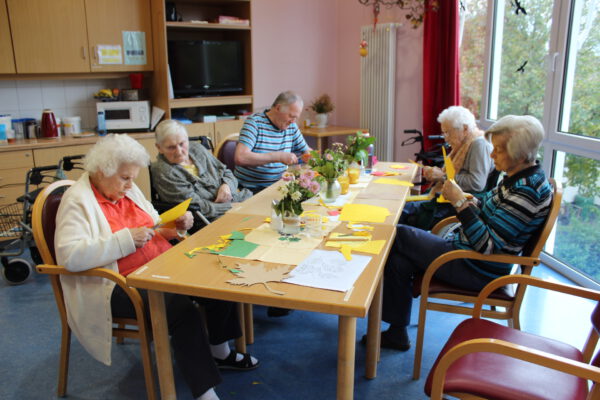 Der Herbst hielt auch Einzug in den Wintergarten. Mit selbst Gebasteltem aus Tonpapier wurden die Fenster dekoriert. Dazu waren einige SeniorInnen im Vorfeld fleißig im Einsatz.