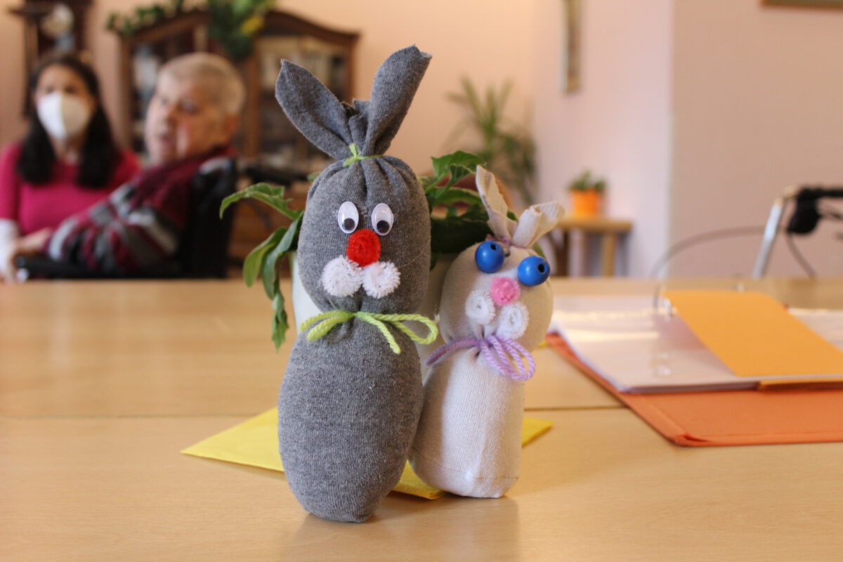 Jede/r kennt das leidige Thema mit den Socken die auf unerklärliche Weise von der Waschmaschine verschluckt werden. Diese Phänomen kam Praktikantin Anja gerade recht. Aus ungenutzter Fußkleidung fertigte sie mit den BewohnerInnen lustige Osterhäschen an. Wie freuten sich die SeniorInnen über diese netten Gesellen die weich in der Hand lagen und mit den netten Kulleraugen […]