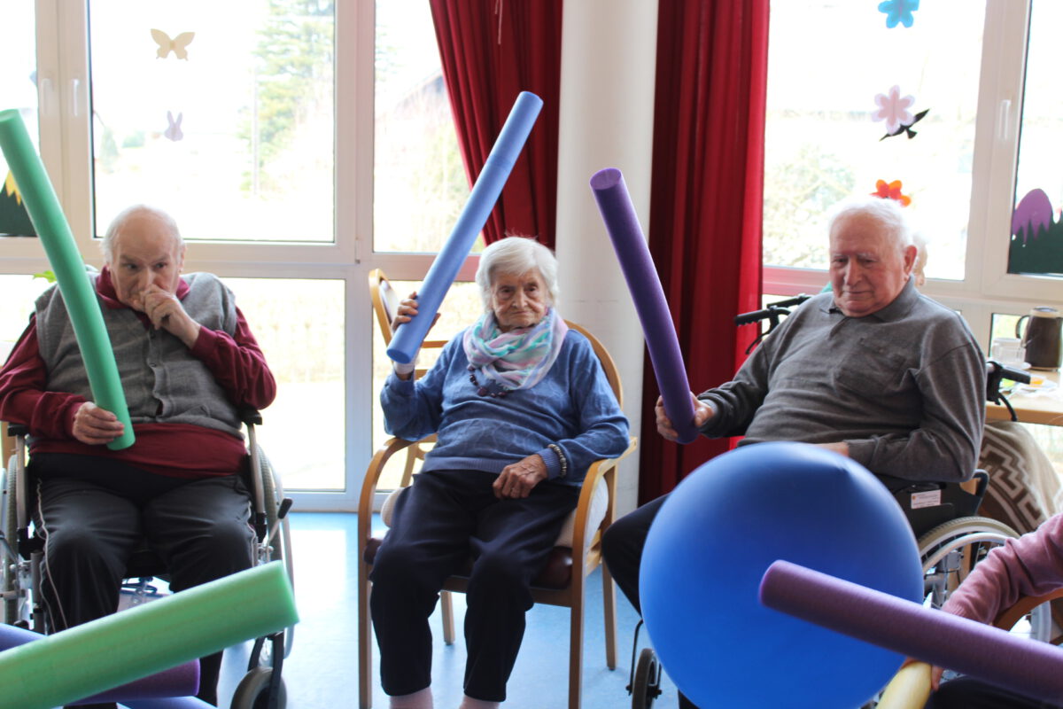 Unser Körper braucht ein Leben lang Bewegung. Der Einfluss auf Körper und Psyche ist durch viele Untersuchungen belegt. Mit Gleichgesinnten macht die Bewegung fast allen Menschen Spaß und so ist es besonders wichtig die BewohnerInnen zur Teilnahme an dem Gruppenangebot zu motivieren. Größte Freude herrscht beim Spiel mit den Schwimmnudeln oder dem Luftballon. Hier ist […]