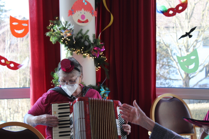 Bei Musik und guter Laune feierten wir traditionsgemäß unseren Hausfasching am Faschingsfreitag. Leicht maskiert bewegten wir uns zur Akkordeonmusik von Elfriede, sangen, tanzten und freuten uns über die willkommene Abwechslung. Die Mitarbeiter der Küche hatten wieder leckere Krapfen bereit so dass auch für das leibliche Wohl gesorgt war. Ausgelassen war die Stimmung und alle waren der Meinung dass es eine gelungene Veranstaltung war.
