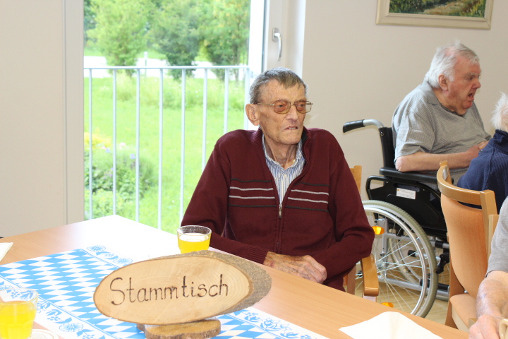 Zu unserer gut besuchten Vatertagsfeier konnten wir den „Jodler Richard“ aus Landshut als Musiker gewinnen. Mit „I bin a boarischer Bua“ gab er gleich sein Stelldichein. Geschichten aus seinem Woidlerleben fanden gespannte Zuhörer. Es folgten Jodler und auch Witze. So war es kein Wunder dass durch die gelöste Atmosphäre auch unsere Männer zu jodeln begannen. „Mei is des zünftig“ war zu hören. Sogar Freudentränen gab es in manchen Augenwinkeln zu sehen. Hr. Holly meinte „Des ist ja wie Weihnachten“. Es folgte der Glockenjodler von Tirol und bei der „Rosa aus Böhmen“ klatschten alle oder klopften vor Freude auf den Tisch. Auch Betreuungskraft Inge gab ihr Debut mit dem Lied „Mia san vom Woid dahoam“ und erntete dafür großen Applaus. Mit einer zünftigen Brotzeit aus Weißwurst und Brezen endete das schöne Fest zu Ehren unserer Väter/Männer.